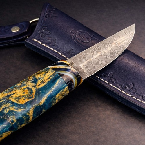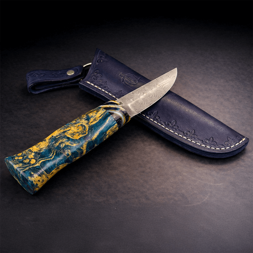 İskandinav geleneğinin en köklü ve güvenilir bıçak formu olan Puukko, yüzyıllardır günlük kullanım ve doğa yaşamının vazgeçilmez bir aracı olarak kullanılmaktadır. Bu özel üretim model, geleneksel Puukko tasarımının tecrübe ve zanaatkârlıkla birleşerek modern malzemelerle yeniden yorumlanmış halidir.Paslanmaz Damascus çelikten üretilen namlu, katmanlı yapısı sayesinde üstün keskinlik, uzun süreli dayanıklılık ve her bıçağa özgü benzersiz bir yüzey deseni sunar. 2,5 mm kalınlık, hassas kesimlerde yüksek kontrol ve dengeli kullanım sağlar. Kök ambonya ağacı ve mamut kombinasyon kabza ise nadir doğal malzemelerin estetik uyumu ve ergonomik yapısıyla hem sağlam hem de karakteristik bir tutuş sunar.Kamp, bushcraft, doğa yürüyüşü ve tüm outdoor aktivitelerinde güvenle kullanılabilecek bu el yapımı Puukko bıçak, geleneksel İskandinav zanaatkârlığını modern üretim kalitesiyle buluşturan seçkin bir parçadır.