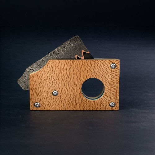 Gambit modeli, kompakt yapısı ve ergonomik tasarımıyla günlük taşıma ve koleksiyon amaçlı kullanım için geliştirilen seçkin bir bıçaktır. Modern formu ve geleneksel el işçiliğinin birleşimi, bu modeli hem fonksiyonel hem de estetik açıdan değerli bir aksesuar haline getirir.Bakır Sanmai çelikten üretilen namlu, sert çekirdek yapısını koruyan katmanlı çelik yapısı sayesinde üstün keskinlik, dayanıklılık ve benzersiz bir görsel karakter sunar. 2,5 mm kalınlık, hassas kesim performansı ve dengeli kullanım sağlar. Brezilya çınarı kabza ise doğal damar yapısı, sağlamlığı ve ergonomik tasarımıyla konforlu ve güvenli bir tutuş sunar.Seçkin zevklere hitap eden bu el yapımı Gambit bıçak, günlük taşıma (EDC), koleksiyon ve özel kullanım için benzersiz bir tercihtir.