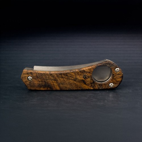 Razor modeli, kompakt yapısı ve zarif tasarımıyla günlük taşıma ve koleksiyon amaçlı kullanım için geliştirilmiş seçkin bir bıçaktır. Modern formu ve dengeli yapısı, bu modeli hem fonksiyonel hem de estetik açıdan prestijli bir aksesuar haline getirir.Böhler N690 çelikten üretilen namlu, yüksek korozyon direnci, uzun süreli keskinlik ve güvenilir performans sunar. 2,5 mm kalınlık, hassas kesimlerde maksimum kontrol ve dengeli kullanım sağlar. Kök çınar kabza ise benzersiz damar yapısı, doğal dokusu ve karakteristik formuyla her bıçağı görsel olarak eşsiz kılar ve ergonomik bir tutuş sunar.Seçkin zevklere hitap eden bu el yapımı Razor bıçak, günlük taşıma (EDC), koleksiyon ve özel kullanım için benzersiz bir tercihtir.